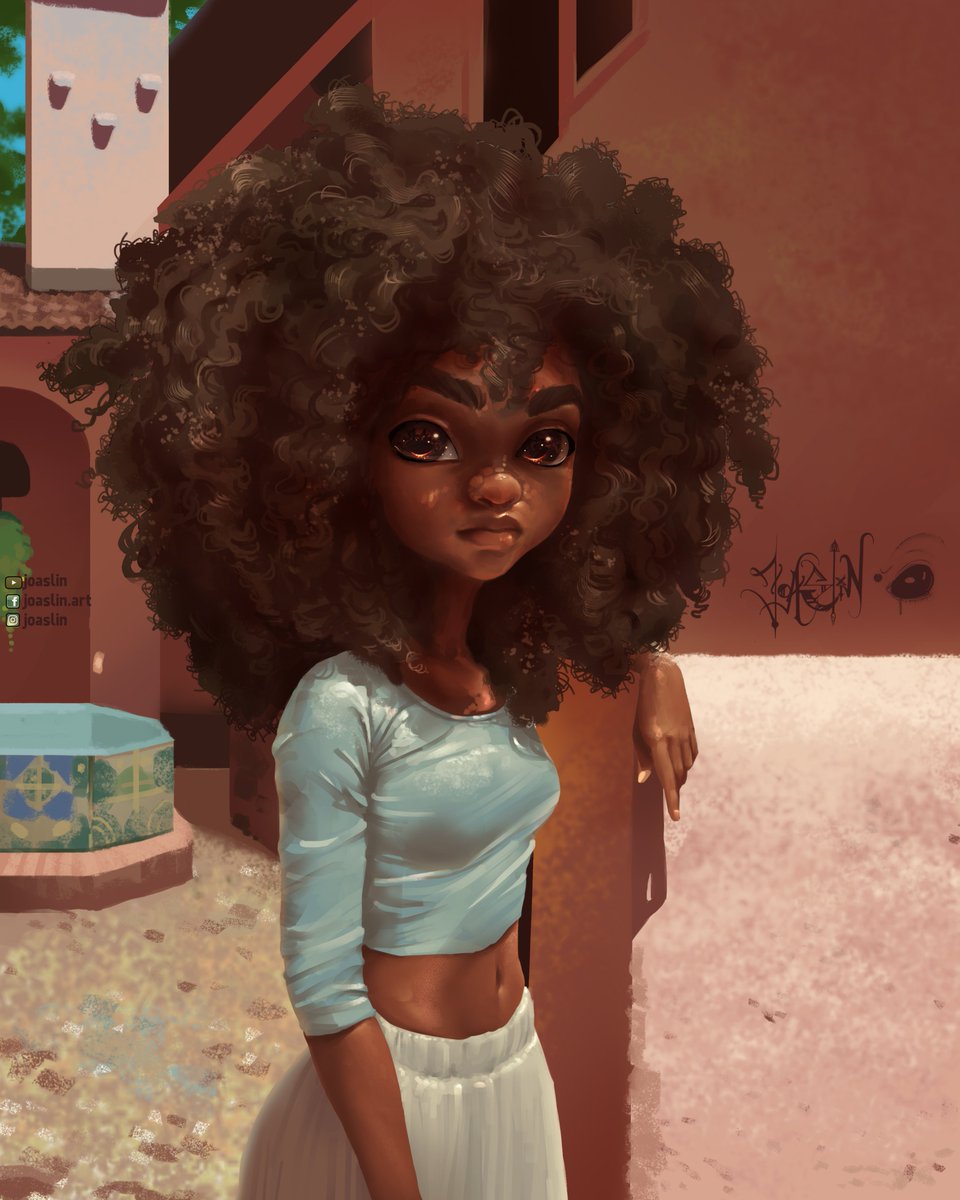 JoAsLiN on Twitter: "☀️Hello 😄 Huge curly hair! A painting at the Zenith! Zoom in to see the shape simplifications I applied (focus on her hair and face lighting!😋) Enjoy! #digitalart #curlyhair #